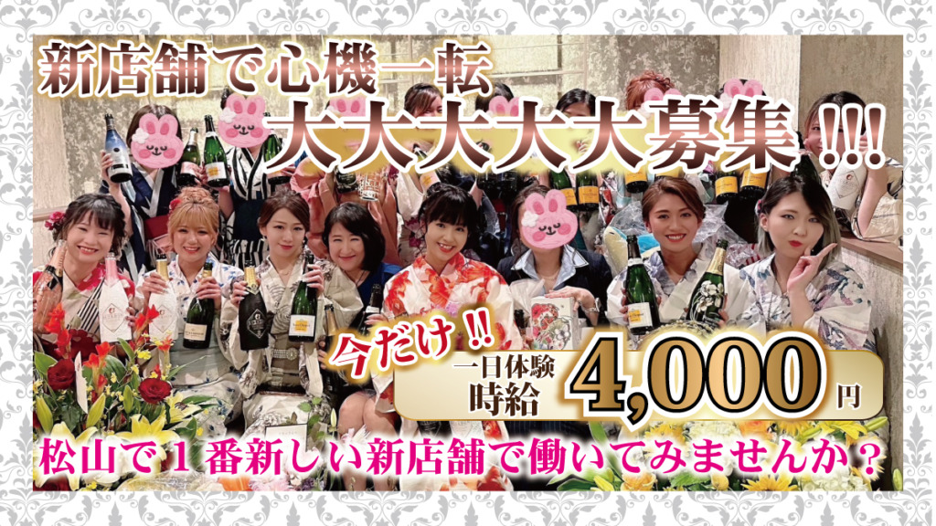 当たり前を大切に19年。色んな悩みを抱えて、連絡しようかと読んでくれていると思います。おせっかいにならない程度に、しっかりと女の子と向き合って楽しく働けるようにママとして関わっています。体験に来る前から店のサイト、ブログなども確認してアットホームさを感じてください。人間関係の面倒くさい気づかいがない環境で自分にあったライフスタイルで出勤して楽しく働きましょう。経験者はより自分のお客様を大切にでき、自分の個性を存分に出せますよ!お店変わりましょう!
