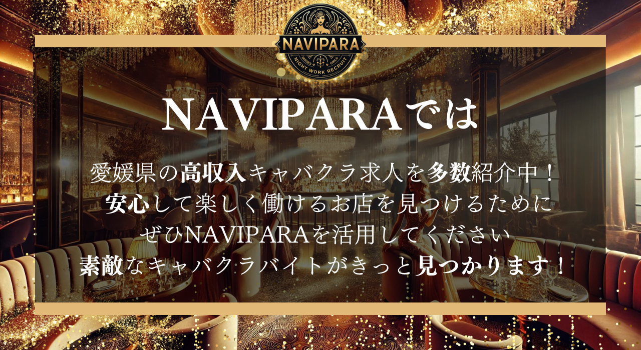 NAVIPARAでは、愛媛県の高収入キャバクラ求人を多数紹介中!安心して楽しく働けるお店を見つけるために、ぜひNAVIPARAを活用してください。素敵なキャバクラバイトがきっと見つかります!