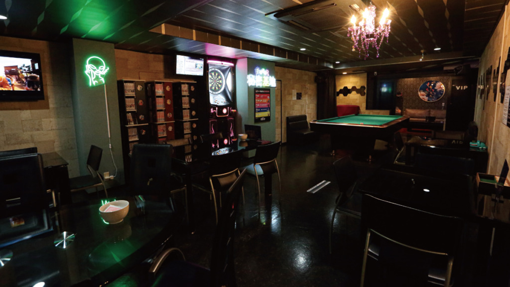 店内にはカラオケ、ダーツ、ビリヤード、switch、1000冊以上のマンガ、ポーカー、麻雀、ガチャガチャなど、たくさんの遊びを用意してあり、接客業が初めての方でも接客に困らないです!!
